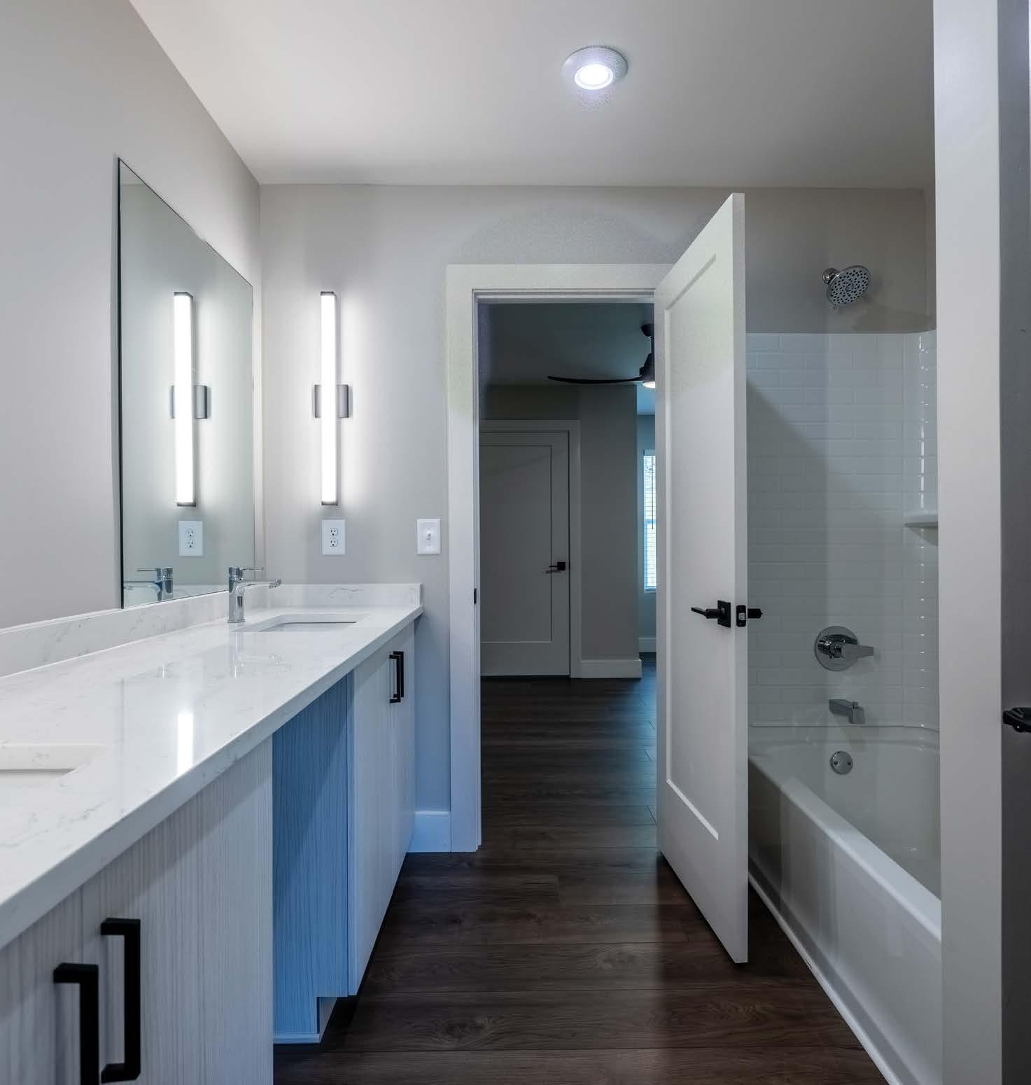 All in all, Split Rock will host four buildings with a total of 24 townhomes, each of which includes a one-car garage (attached for threebedroom units and detached for four-bedroom units) and additional parking places per unit. Guest parking is plentiful as well, with five of the eight acres used to create ample parking for all.