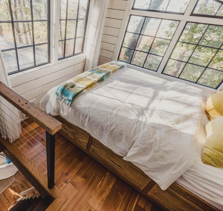 We have had the FoResTreeHouse for two years; it was fun getting to be creative with the unique design of the place. There are a lot of different wood species incorporated into the building that gives the structure lots of character and uniqueness. Most wood species used were locally sourced and native to this region of North Georgia. A lot of items in the space are reclaimed and were incorporated into the construction from the start.