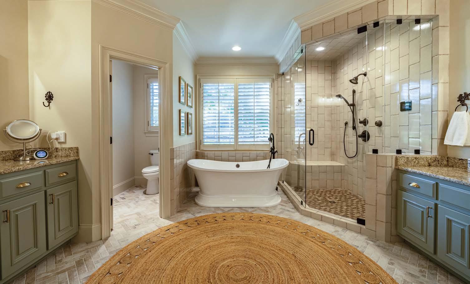Once all the guests go home and the kids are in bed, this is also a house where relaxation can be a priority, especially with the brand new, complete primary bathroom renovation. This luxurious space now has a speaker sound system and a freestanding soaking tub for those nights when mom needs a jazz-infused rose petal bath and a glass of wine to unwind. “The current owners just put in a sauna steam room shower, so they are together, and you can turn it on or off depending on what you want, and heated floors,” says Hunt, which are wonderful for the cold winter mornings when getting out of the cozy bed seems impossible.