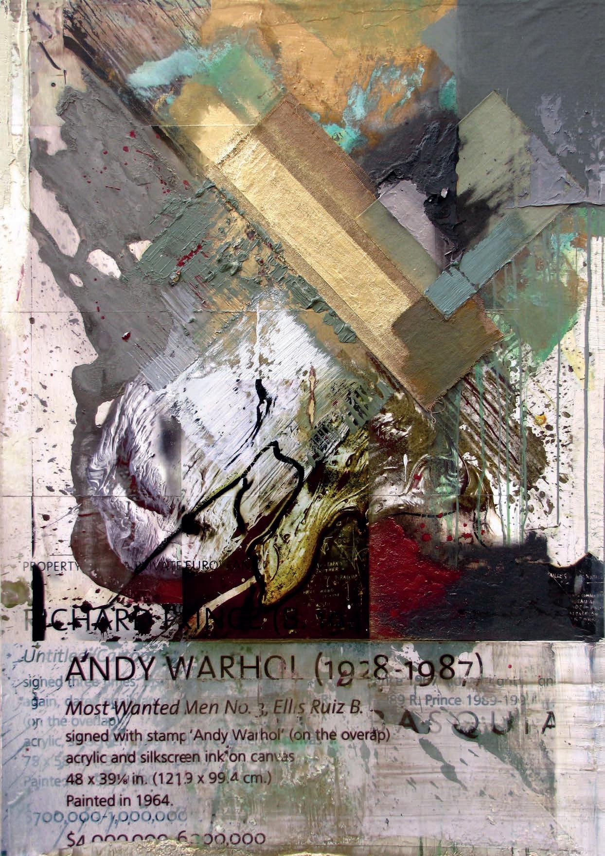 Untitled Painting on Andy Warhol´s Self-Portrait by Christie´s 2015 Oil, Inkjetprints, Fabric on Canvas 200 x 140 cm