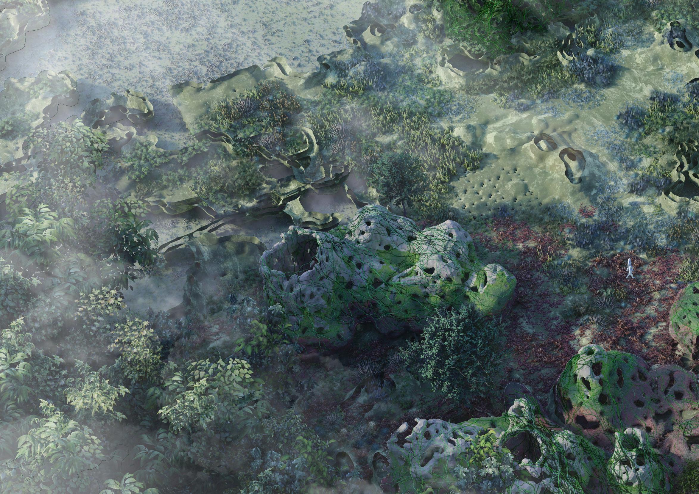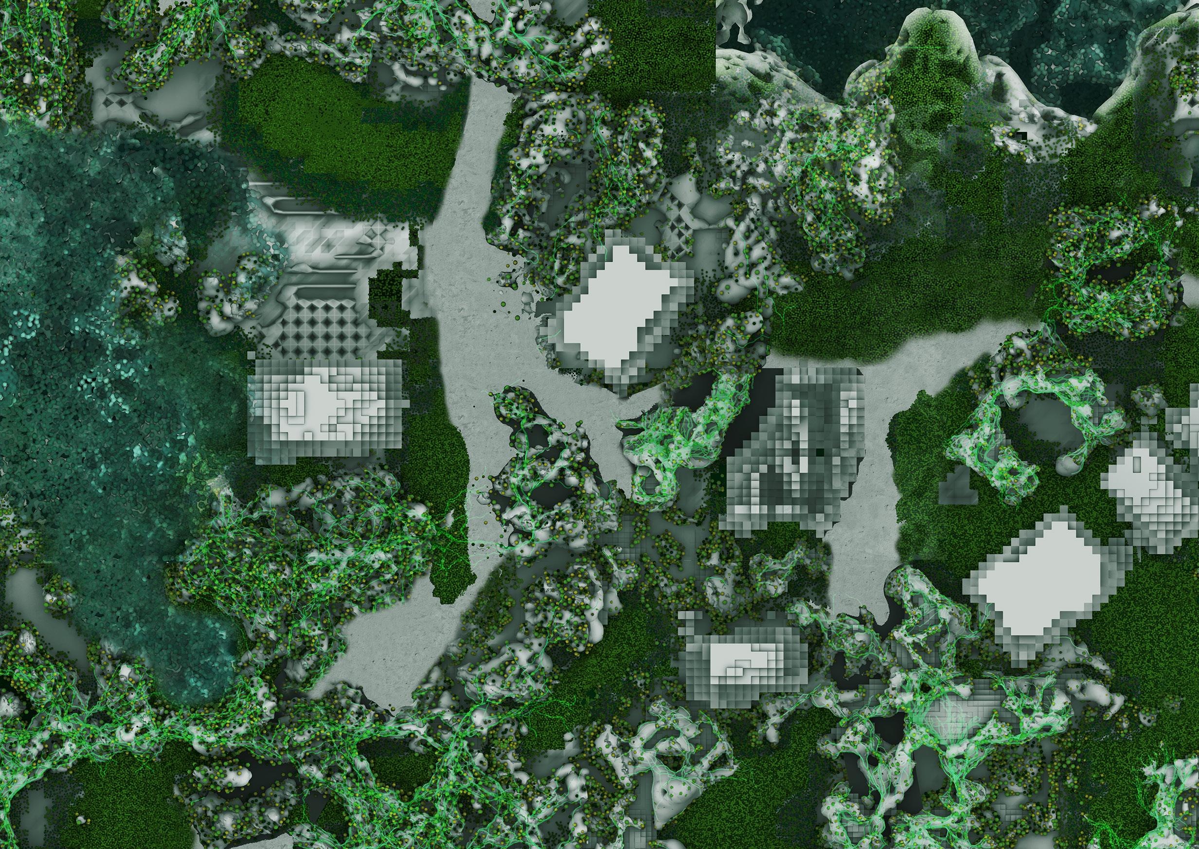 The future city is reimagined as a energy-led productive landscape that looks beyond solving anthropocentric issues. Driven by both artificial and biological intelligence, the new cityscape utilises biomaterials’ photovoltaic capacities and provides an alternative mode of energy production that reminagines network formations in the urbanscape, while creating cross-species justice for all beings.