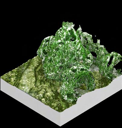 Chapter 2 explores moss and microalgae as main bioenergy sources for the new post-anthropocentric urban energy landscape. A study of their characteristics, mechanisms and applications is conducted in order to test the coexistence of these materials and their symbiotic, mutually beneficial relationships. Moss and microalgae are two of the most ancient, widespread, and simple organisms in the world. Their high resilience and adaptability has allowed them to flourish in a wide variety of habitats, ranging from freshwater and woodlands to degraded abandoned sites. They are found among each other in natural environments, and thrive from their spatial adjacencies. Both photosynthetic organisms that consume carbon dioxide, they transform the breakdown of carbon dioxide into energy, which can then be converted into electricity. Not only are they energy generating, they can also stabilise habitats and help new plants grow by revitalising soil and retaining water.
