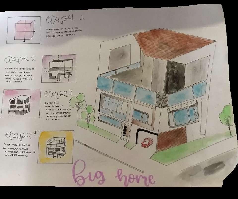 La casa cascada del ejercicio anterior la utilizamos para ambientar, en la cual tuvimos que aprender sobre el manejo de photoshop donde insertamos vegetación, el suelo y el cielo para hacerlo más realista