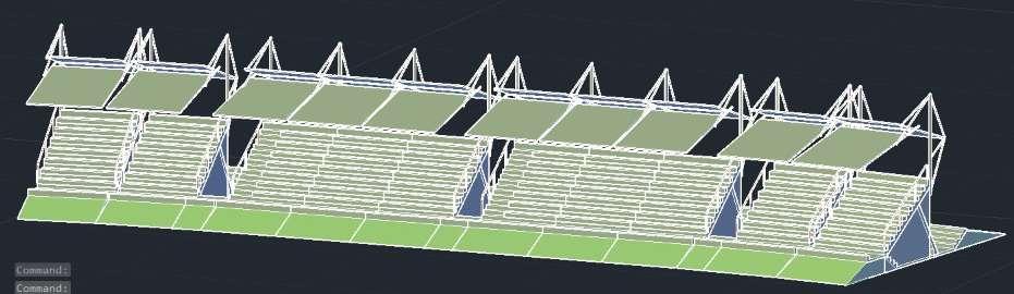En esta actividad, se nos pidio generar unas modelado de gradas para un estadio o campo olimpico, en la cual se inicio modelando en autocad para despues darle su reflejo de como se vería