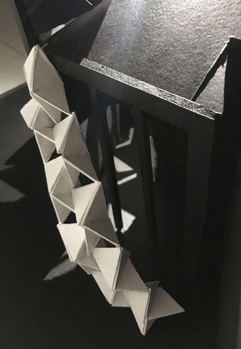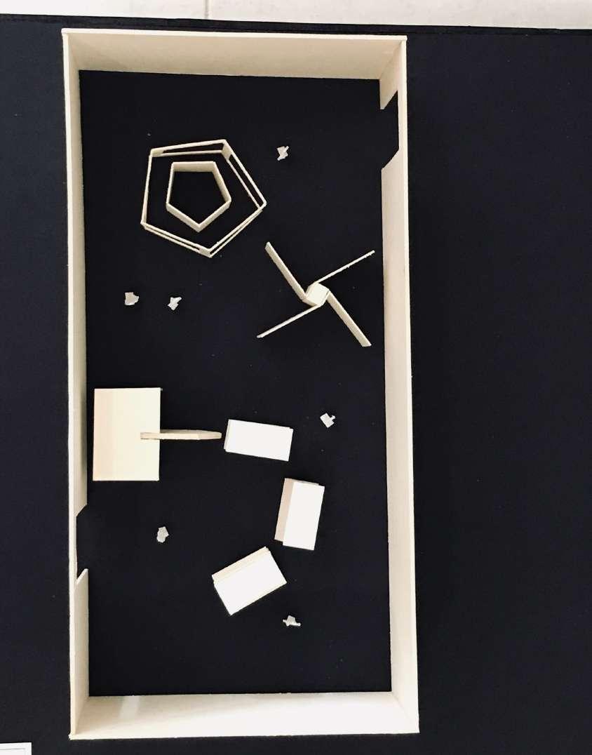actividad se nos indico crear una cinta infinita cinta espacial, en la cual debíamos respetar la forma cubo sin que sea un cubo como tal Esto intenta mediante un elemento físico una mayor integración en la composición arquitectónica