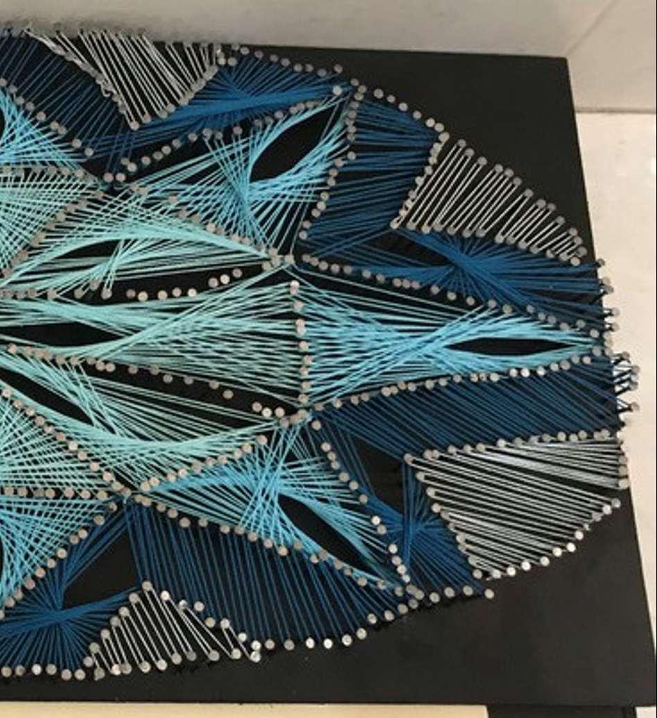 Este proyecto lo que se trata es reflejar mediante el String Art una sensación al verlo, lo cual tenía que reflejarse mediante la forma en como sería, el enhilado que fuera innovador y no convencional, y por último el uso de los colores que vaya de acuerdo a la sensación que quieras causar