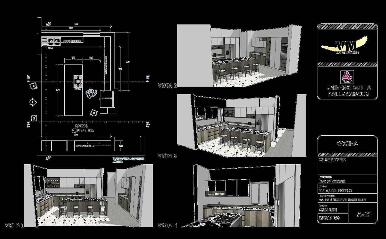 de diseño de cocina en la cual se tomo en consideración las modulación correcta de cajones distribución del mobiliario