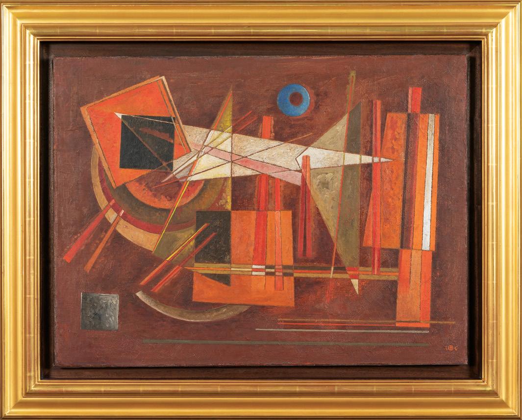 41 × 41 INCHES FRAMED SIGNED AND DATED LOWER RIGHT PROVENANCE: THE BRUZZONE GALERIA DE ARTE (URUGUAY) C. 1970S.