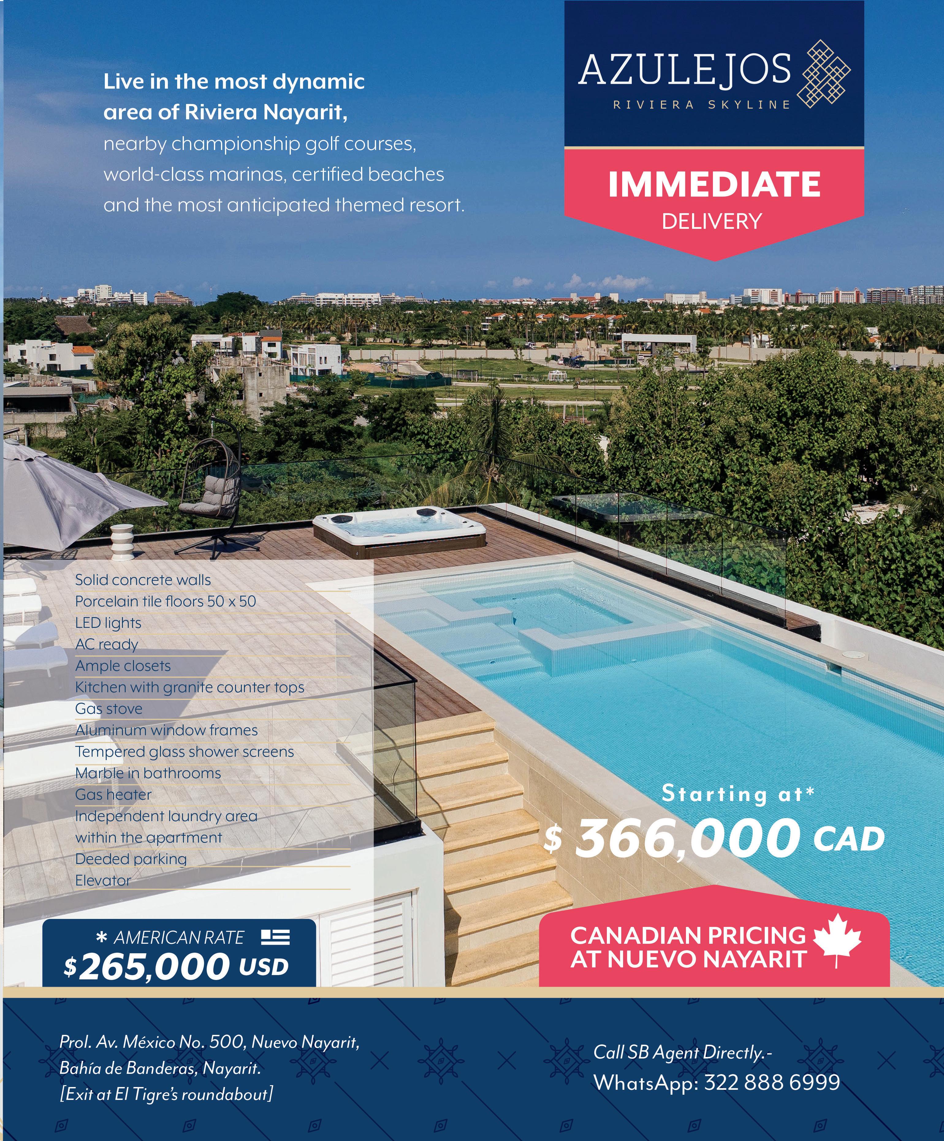For more information on available units, interested parties can contact Nancy Beltrán, real estate agent of SB Realtors representing Azulejos Riviera Skyline, at 322 888-6999 or nancy@sbrealtors.mx