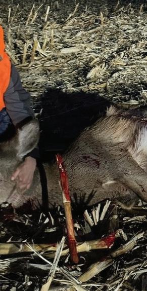 Joey Dushek had made the decision that it was too windy to shoot from his tree and was doing a very slow walk and stalk. Joe came across a good buck that turned out to be a 10-pointer and sent it to heaven and it was incredibly cool to hear his war whoop which meant he had shot a buck. This was the beginning of a huge job, removing his stand, dressing his buck and a two-mile drag. Joe made it to my stand just before dark, which meant we had