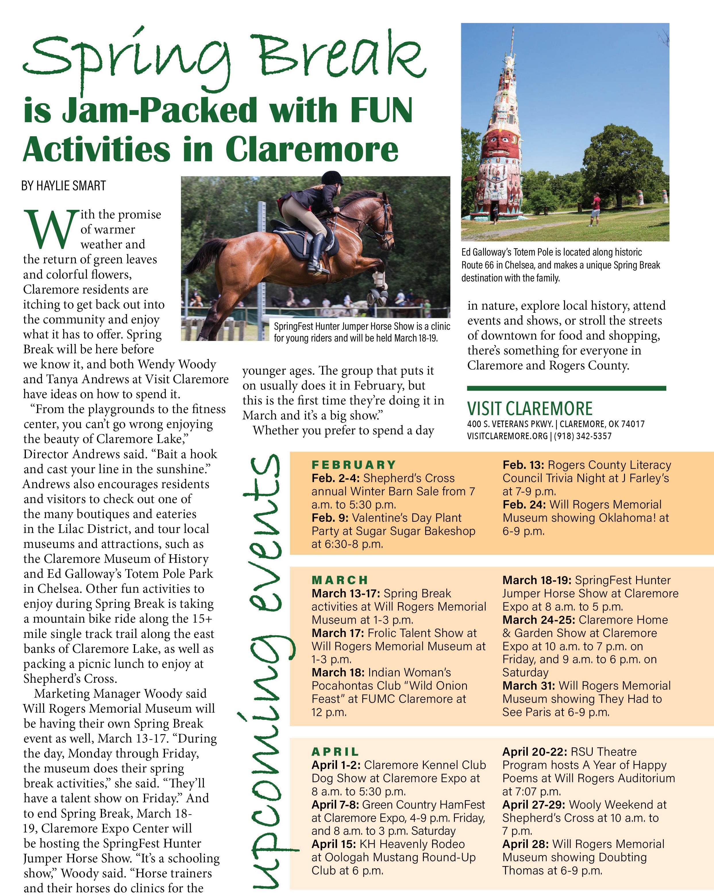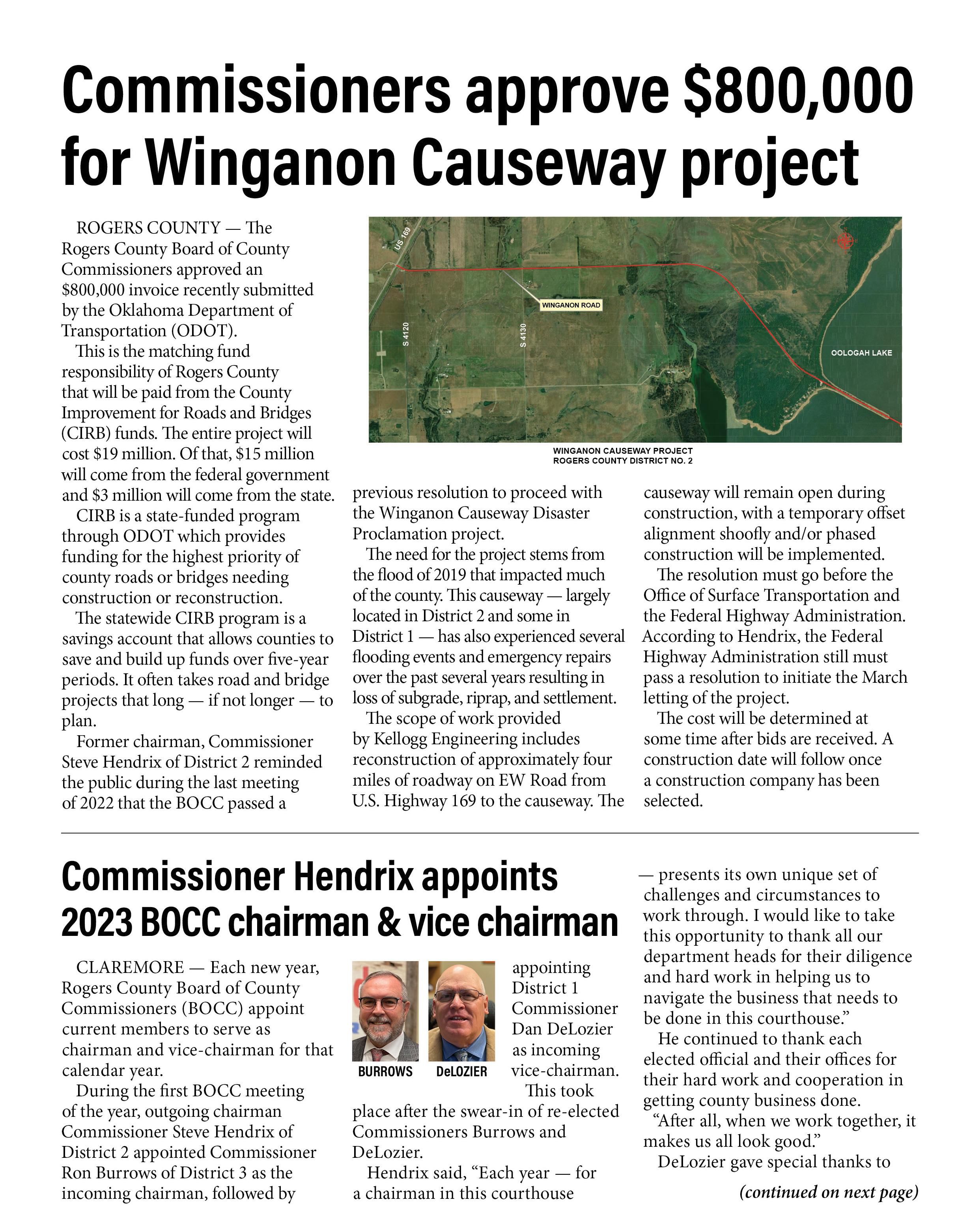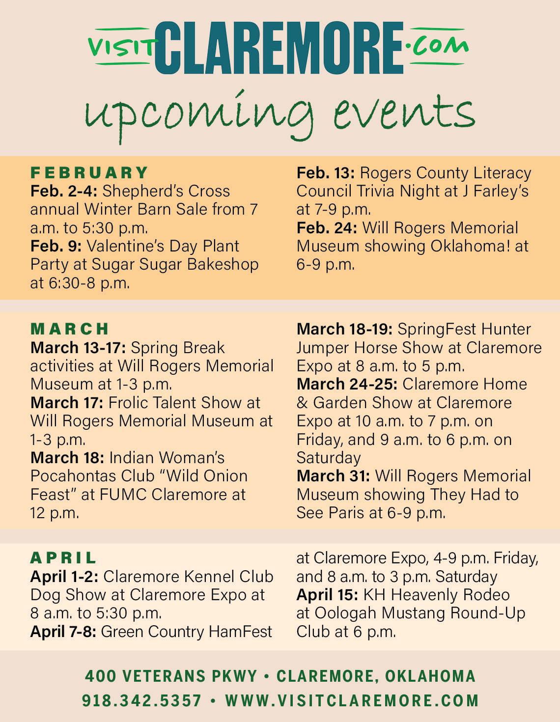 ABC Seamless of N.E. Oklahoma ..................................................................... 31 Affordable Insulation of Oklahoma 18 AVB Bank 37 AVB Hires Chief Digital Officer .................................................................... 30 BA Med Spa & Weight Loss 4 Black Hat Chimney & Dryer Vent Cleaning 59 Bob Moore Chrysler Dodge Jeep Ram of Tulsa ............................................... 40 Buffalo Wild Wings 10 Derksen Buildings 63 Domino’s Pizza ................................................................................................. 22 Don Julio Mexican Bar & Grill 29 Dun-Rite Roofing 37 Exhibitors & Vendors: Sign-Up for the Tulsa HBA Claremore Home & Garden Show.............................................. 36 Face & Body: New Morpheus8 at BA Med Spa & Weight Loss 32 Floral Creations ................................................................................................ 29 Generate Your Own Clean Energy .............................................................. 42 Gleam Guard Whole Home Wood Refinishing 46 Greg Wilson Agency, Farmers Insurance ......................................................... 10 Grigsby’s Carpet, Tile & Hardwoods 11 Grout Care of Tulsa 4 Grout Problems Solved .............................................................................. 12 Hello Garage, Tulsa 9 High Tower Accounting & Tax 10 Home of Hope 28 Indian Women’s Pocahontas Club Announces 2023 Officers ...................... 44 Inola Portable Buildings & Pole Barns 35 Jack Kissee Ford 14, 15 James R. Webb M.D. 39 Jersey Mike’s Subs 64 Martial Arts Academy 22 Medicare Enroll USA 19 Mens Shop, The 34 Mother Nature’s Pest Control & Lawn 64 Needful Things Market 29 Oklahoma Bankers Assn. Honors Kelley Rash 6 Outdoor Creations Roofing & Solar 48 Planning Your Stress-Free Wedding 38 Premium Cabinets 54 Premium Cabinets Help Fulfill Perfect Balance of Design, Function............ 16 Reveal Skin Studio 19 Rogers County Announcements: Claremore Downtown Lilac District Names Dietzfeld Executive Director 52 Commissioner Hendrix Appoints 2023 BOCC Chairman & Vice Chairman .................................................... 50 Commissioners Approve $800,000 for Winganon Causeway Project 50 Rogers County Swears In 3 Elected Officials 51 Select Outdoor Solutions 58 South Pointe Chevrolet 2 South Pointe Chrysler Jeep Dodge Ram 23 South Pointe Honda 64 Spring Break in Claremore, Jam-Packed with Activities 53 Stillwater Milling Company 57 Strategies for Saving Money on Your Taxes ................................................ 20 Things to Do Presented by Central Bank 60 Think Wilson! for your Insurance Coverage 26 Three Twenty on Main Weddings & Events Venue 34 Tile by Tony Remodeling 31 Tulsa County Assessor’s Office 63 Valentine’s Day Comes to Floral Creations ................................................. 56 Value News 34 Visit Claremore 22 What Every Tulsa County Property Owner Should Know............................ 5 What’s Your Home’s R-value? 24 Wild Onion Feast! 45 Value