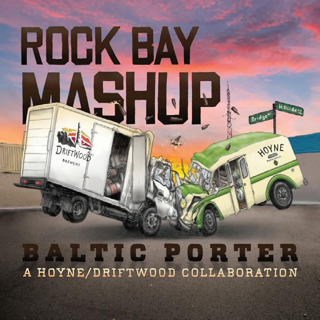 Collaboration brews are common among breweries in B.C., but they typically aren’t truly collaborative since the beer is brewed at one brewery with some other brewers meeting up on the brew day to drink beer and symbolically toss in some ingredients. But there has been at least one true collaborative brew in B.C.: The Rock Bay Mash Up. Back in 2014, then neighbours Driftwood Brewery and Hoyne Brewing each brewed the same Baltic Porter recipe with one difference—Driftwood used an ale yeast and Hoyne used a lager strain— and then they linked more than 60 metres of hoses together and pumped Hoyne’s batch into a bigger tank at Driftwood. The resulting blend was released by both breweries as the Rock Bay Mash Up (8% ABV) and it was delicious! j