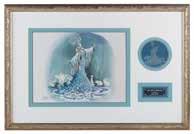 13. An Edith Head Costume Design for Mae West. (20th Century Fox, 1970) An Edith Head costume design for Mae West in “Myra Breckinridge.” While Theadora Van Runkle was the costume designer for the film overall, it was Edith Head who exclusively designed West’s costumes. Head’s look for the sex symbol is a gorgeous white outfit with ostrich feathers and a jeweled belt. Head signed the piece in the bottom left corner. Measuring 14.75” x 19.75” on a 19.75” x 24.75” matte, this art displays in very good condition with light scratches and pinholes. $1,500 - $2,500