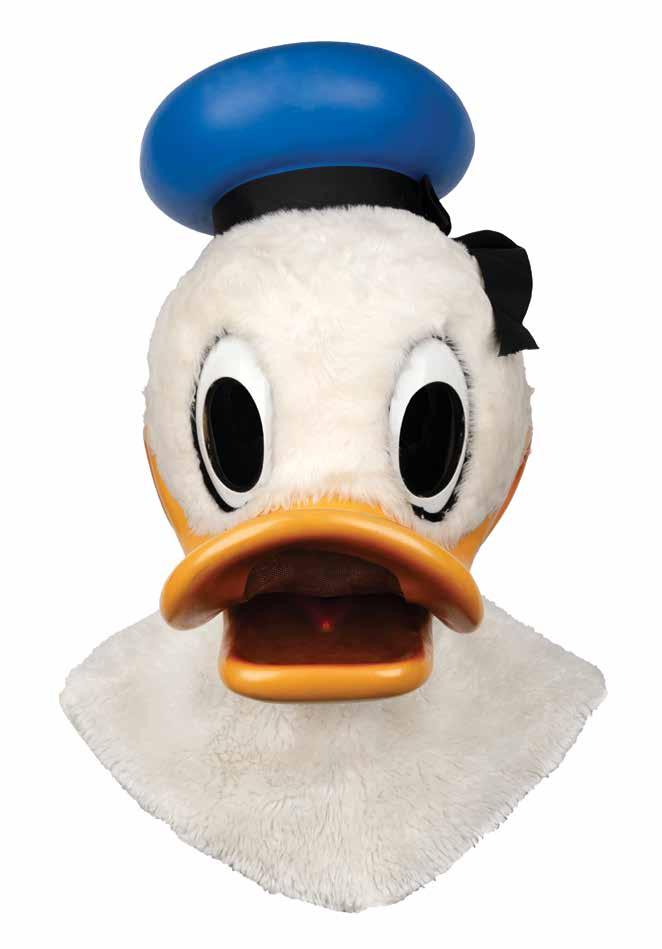 750. A Clarence Nash Signed Donald Duck Squeaker Hat. (BenayAlbee, 1970s) An early Donald Duck child’s souvenir hat with a working squeaker bill. The original Walt Disney World ribbon affixed to the crown and patch has a faded inscription and signature from Clarence Nash, the voice actor of Donald Duck for 51 years. The hat, made of wicker and plastic measures 10.5” from the bill to the back, 4.75” tall, with a 7.5” inner band, and is in very good condition with a couple of small light stains on the back and partial loss of adhesive to the top patch. $200 - $400