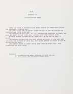 A suit jacket worn by Sir Alec Guinness in the comedy-mystery film “Murder by Death.” This is the outfit Guinness wears at the beginning of the film while sending out invitations to guests. The Bermans & Nathans tag on the jacket includes Sir Alec Guinness’ name, the film’s title, and code 9910. No sizing information is included, but the gray jacket appears to be a men’s size medium and is in very good condition with light wear from use and pinholes on the right shoulder, collar, and lower back. $300 - $500