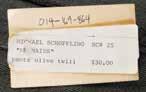9. A Cary Grant Trench Coat. (Grant/20th Century Fox, 1948-49) A heavy trench coat worn or owned by actor Cary Grant. A label sewn inside the inner breast pocket indicates this coat was made for Grant in 1948 by P. Vauclair of Paris. A label added over that one for 20th Century Fox enters it into the Studio wardrobe inventory in April of 1949. Labeled “44”, the 54” long heavy coat is in very good condition, with light wear from age. $300 - $500
