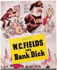 6. A Book of “The Bank Dick” Marketing Materials. (Universal, 1940) A book of marketing materials for the W.C. Fields film “The Bank Dick.” Featured inside are publicity articles, poster concepts, and accessories. Measuring 11.5” x 14.25”, the marketing book is in good condition with a heavy fold in the middle, stains, “file copy return still dept.” stamps on the cover, and wear from use. $200 - $400