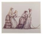 17. An Edith Head “My Six Loves” Debbie Reynolds Costume Design. (Paramount, 1963) An original costume design by Edith Head for Debbie Reynolds in “My Six Loves.” Head was perhaps the most influential costume designer in Hollywood history, working closely with the biggest stars and earning eight Academy Awards for Best Costume Design. With an image size of 7” x 15.5” on 12” x 17.75” drawing paper, the marker, graphite, and watercolor design displays in good condition with creases, light scuffs, smudges, discoloration from age, and heavy soiling on the sides, which do not affect the image. $400 - $600