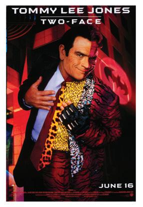48. A Pair of “Batman Forever” Villain One-Sheets. (Warner Bros., 1995) A pair of “Batman Forever villain one-sheets for Jim Carrey as The Riddler and Tommy Lee Jones as Two-Face. Measuring 27” x 40” each, the posters are in very good condition with light creases, minor scuffs, and edge wear. $200 - $400