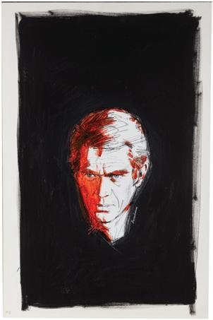 20. A Steve McQueen Painting by Robert Tanenbaum. (Tanenbaum, 1970s) An original painting of the “King of Cool,” Steve McQueen, signed by poster artist Robert Tanenbaum. Accomplished in acrylic with an image size of 17” x 28” on a 20” x 30” artist board, the painting is in very good condition with light wear and creases at the corners. $500 - $700