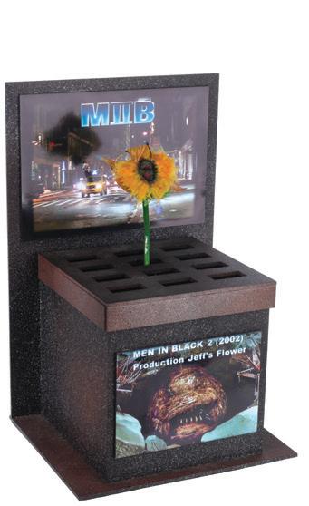 68. A “Men in Black II” Jeff Flower Prop. (Sony, 2002) A prop flower from “Men in Black II” starring Will Smith and Tommy Lee Jones. This flower is seen on the head of Jeff, the giant worm-like alien living under ground in New York City’s subway tunnels. Measuring 8” tall in a 6.75” x 8” x 12” tall custom display resembling a sewer grate, the flower prop displays in very good condition with fraying, paint loss, and wear from production use. $500 - $700