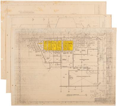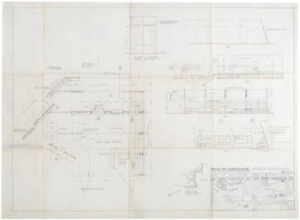 Production Art. (Warner Bros., 1992) A collection of “Batman Returns” production-used documents. Included is an original drawing of Batman’s leg in pencil on vellum; and photocopies of a storyboard page, a bat puppet design, four Gotham City building exterior designs, and a large color concept for The Penguin’s lair. Measuring from 8.5” x 11” to 11” x 17”, the drawing and documents are in good condition with light edge wear and creasing from production use. $300 - $500