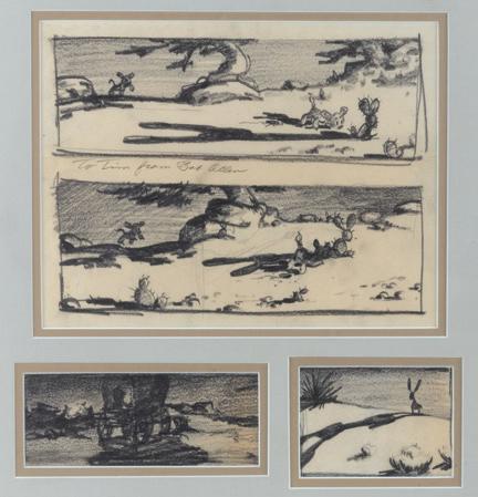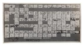 19. An Elvis Presley “Speedway” Storyboard. (MGM, 1968) An original hand-drawn storyboard for the film “Speedway” starring Elvis Presley and Nancy Sinatra. Written in pencil on the storyboard is the direction “Elvis looks back.” With an image size of 4.5” x 10” on 9” x 12” vellum, the graphite and marker storyboard displays in very good condition with creases, light spotting from age, and edge wear and tears. $300 - $500