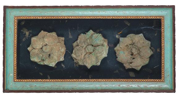 62. A “Titanic” Grand Staircase Prop. (20th Century Fox/ Paramount, 1997) An original Grand Staircase prop from James Cameron’s “Titanic.” A full-scale reproduction of the legendary ship was built and used for filming at Fox Baja Studios in Rosarito Beach, Mexico. When filming was complete, beachcombers were able to find ship parts and props in the water. Sections of the Grand Staircase mouldings were released in a limited edition by a salvager, with this particular display numbered 6/40. Measuring 2” x 6.75” in a 13” x 2” x 16” tall custom frame, the painted plaster prop is in fair condition with paint loss, cracks, visible repair, wear from production use, and scratches and wear to the frame. $400 - $600