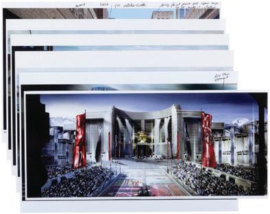 71. A Collection of “The Hunger Games” Production Prints. (Lionsgate, 2012) A collection of six production-used photo prints from “The Hunger Games,” based on the hit novel by Suzanne Collins. Featured are location designs for Panem, including the Capitol, the train, and District 12, home of Jennifer Lawrence’s Katniss Everdeen. Ranging in size from 8.5” x 19” to 11” x 17”, the photo prints are in very good condition with light scratches, pinholes at the corners from display, and black marker notations from production use. $300 - $500