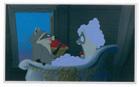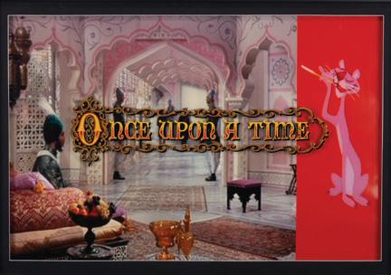 18. “The Pink Panther” Original Title Art. (United Artists, 1963) Incredibly rare title artwork for the opening scene of Blake Edwards’ “The Pink Panther.” Although not an animated film itself, the opening title launched Friz Freleng’s Pink Panther character into stardom, with a series of theatrical shorts and TV shows. This title, Once Upon A Time, appears at the beginning of the film and is hand-painted on a pane of glass by the Pacific Title Company. As the glass would usually be washed off and reused for other titles, this piece is extremely rare and represents not only a piece of the film, but also the beautiful lost art of title making that Pacific Title was known for. The artwork has been framed over a printed reproduction background and measures 19” x 29” in a 23.25” x 33.5” framed matte. The condition is good with heavy paint loss, paint chips, and paint cracks, while the frame is in very good condition with light scratches. This item has special shipping requirements due to size and weight. Please enquire before bidding. $500 - $800