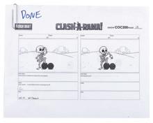 56. An “Indiana Jones and the Last Crusade” Prop Snake and Storyboard Page. (Paramount, 1989) A production-used prop snake and storyboard page from the action-packed opening of “Indiana Jones and the Last Crusade” with a young Indiana Jones, portrayed by River Phoenix, chased along a circus train by treasure hunters. The coiled rubber snake measures 8.75” x 12.75” x 1.25” and is in very good condition with light wear from production use. The 8.25” x 11.5” photocopy storyboard is in good condition with light edge wear and tear, and creasing. $200 - $400