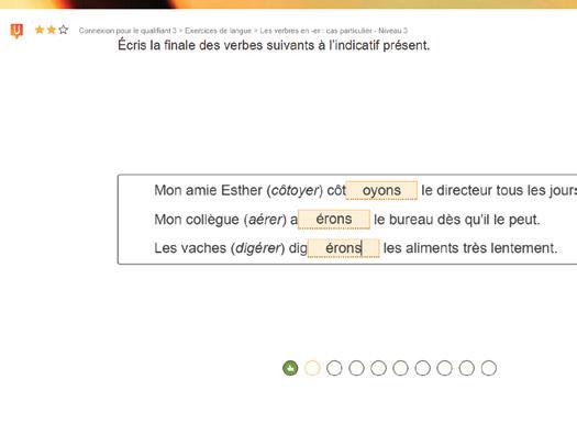 Des exercices en ligne de maitrise de la langue (sur l’orthographe, la ponctuation, la conjugaison, la syntaxe et le vocabulaire) que les élèves pourront réaliser par exemple en remédiation ou en renforcement, avec une correction automatique, et la possibilité pour l’enseignant d’assigner des exercices aux élèves et de suivre leurs résultats.
