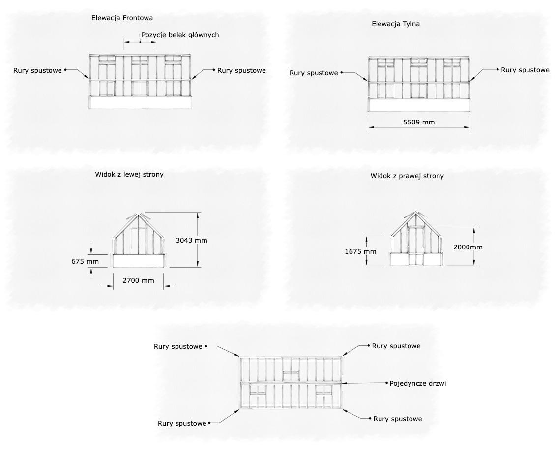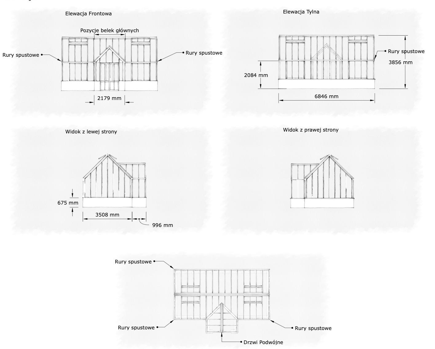 Wszystkie modele mają wysokość ścian 2100mm i ceglaną podmurówkę 675mm Do każdego modelu dołączone są zawsze rysunki techniczne.