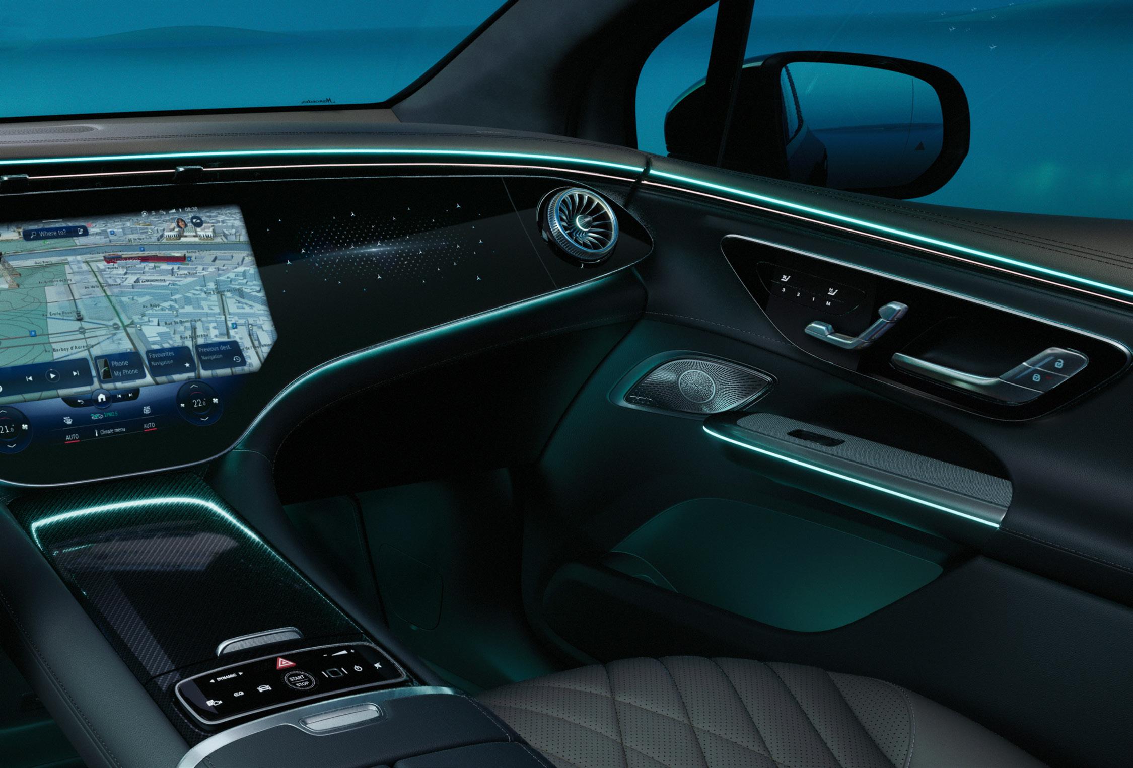 nesupainiojamas naujoviškų Mercedes-EQ automobilių bruožas. Pagal pageidavimą šias groteles galima rinktis su patraukliu Mercedes-Benz trimatės žvaigždės logotipu ir papildomai – su SKAITMENINIO APŠVIETIMO (angl. DIGITAL LIGHT) funkcija, kuri dar