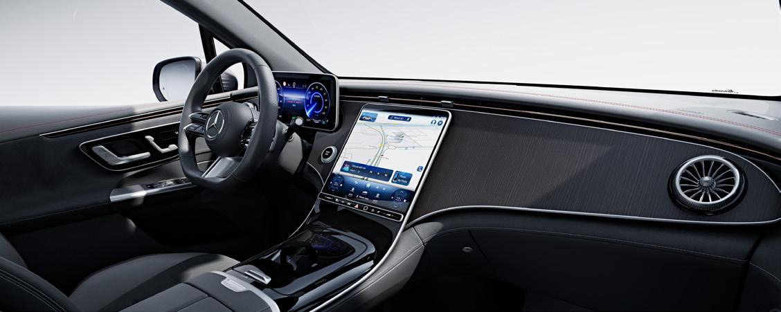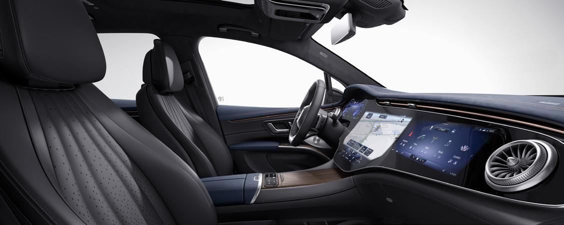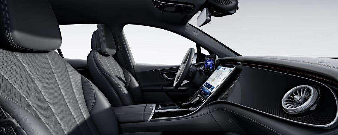 Idealiai parinktas spalvų derinys suteikia erdvumo pojūtį. EQE SUV panardina į dinamiškų šiltų ir šaltų