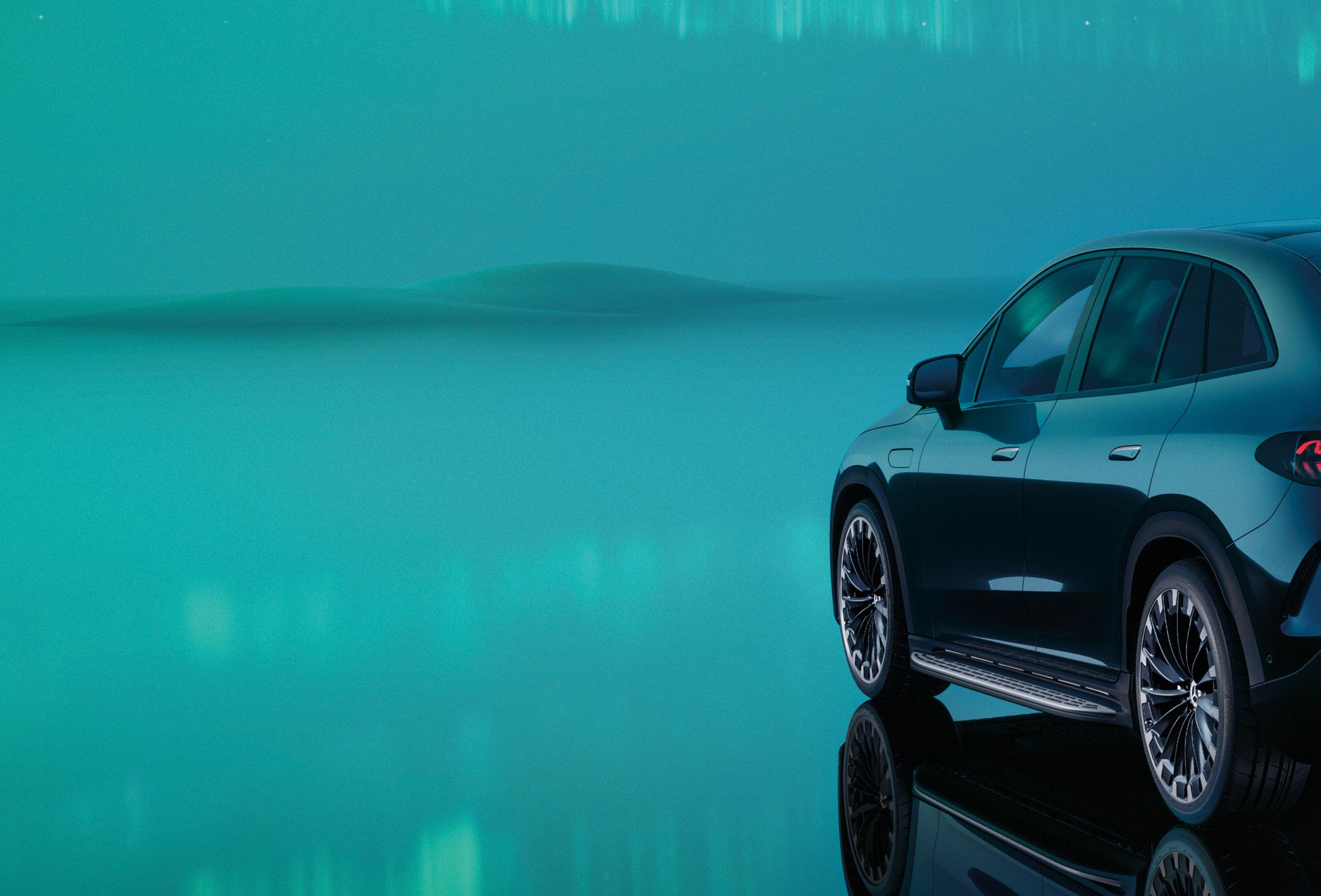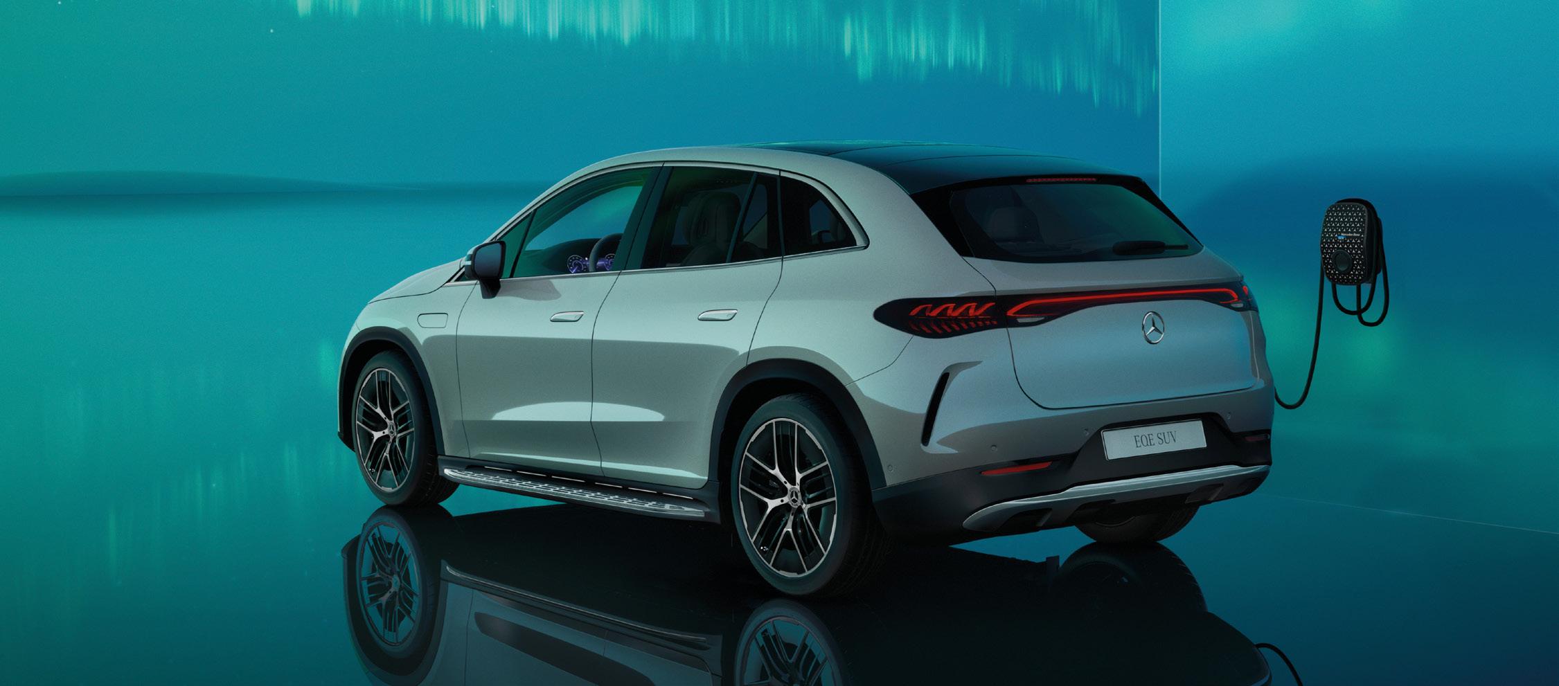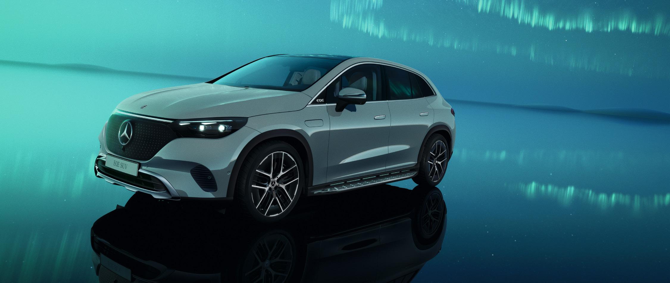 EQE SUV žavi kaip prabangus automobilis, pasižymintis dinamišku siluetu, puristiniu dizainu ir subtilia erodinamika. Elektrinės įleidžiamos durelių rankenos užtikrina mažą oro pasipriešinimą ir triukšmo lygį. Numatytas nuotolis važiuojant elektra – iki 590 km (pagal WLTP)1, 2 .
