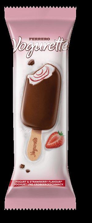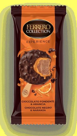 pertura al fondente, scorze d'arancia candita e granella di biscotto; Cioccolato al Latte e Salsa alla Crema Pasticcera con gelato alla nocciola, salsa pasticcera e copertura al latte con nocciole tostate; Cioccolato Bianco e Pistacchio con gelato alla nocciola, salsa al pistacchio e copertura bianca con pistacchio salato. Due referenze esclusive completano l'offerta out-ofhome: Raffaello Triple Experience Peach Dream, gelato al cocco con note di pesca bianca e ibisco, e Yogurette Ice Cream al gusto yogurt e fragola con variegatura e copertura al latte. Ferrero mira a consolidarsi top player in un mercato da 1,5 miliardi di euro, forte di una crescita CAGR del +42,3% contro il +7,4% del mercato. L’intera gamma sarà presente nel canale Out-of- Home, a completamento di un’offerta pensata per rispondere a gusti ed esigenze di consumo sempre più diversificati.
