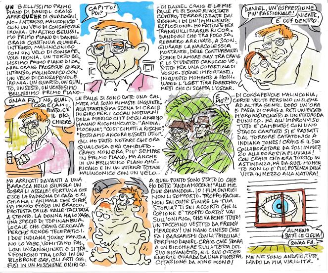 Quando qualcuno chiede se è immaginabile un James Bond omosessuale, Daniel Craig sorride, ma lascia che a rispondere sia il suo regista, Luca Guadagnino: «Nessuno potrà mai sapere quali sono i desideri reali di James Bond,lacosaimportanteècheportiaterminelepropriemissioni». Si guadagna così un lungo applauso dalla stampa l’autore di Queer, il film, tratto dal romanzo di William Burroughs, in concorso alla Mostra del cinema di Venezia, in cui l’ex 007 veste i panni di William Lee. «Ho accettato questo ruolo– spiega Craig – perché volevo lavorare con Guadagnino Era da almeno vent’anni che lo desideravo». Non è uno che si perde in chiacchiere, Craig, ma non si tira indietro di fronte alla domanda inevitabile sulle scene di sesso: «Per girarle – svela - c’è stata una coreografia. Abbiamo fatto varie prove.Ballareconunapersonarompeilghiaccio,manonc’ènulladiintimoin unascenadisessosulsetdoveseiinunastanzapienadigente.Volevamoche fosse commovente e abbiamo fatto sì che fosse anche divertente». «Ho letto il libro a 17 anni – aggiunge il regista - e da ragazzo sognavo di cambiare il mondo attraverso il cinema Con questo film voglio essere fedele a quel giovane che ero». La conferenza finisce, Daniel saluta e se ne va, in perfetto stile british. Niente a che vedere con lo stile yankee di autografi e battute di George e Brad dopo l’incontro stampa dell’altro giorno.