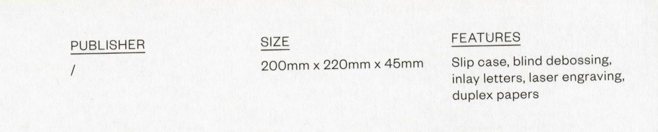 Contents A Book on Books David Finch Mind Games Rinko Kawauchi Illuminance Rosmarie Tissi Graphic Design Measurements Spreads Typeface Measurements Spreads Typeface Measurements Spreads Typeface Measurements Spreads Typeface 06 08 10 20 22 24 26 38 40 42 44 54 56 58 60 66 68 70 72 82 → → → → → → → → → → → → → → → → → → → → Drawing, Material, Sculpture, Landscape Measurements Spreads Typeface