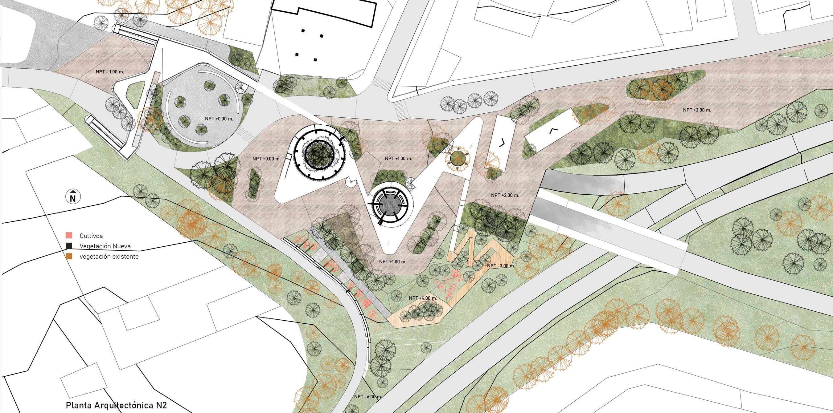 El proyecto pretende ser un oasis y punto de encuentro dentro del cantón, donde mediante núcleos acústicos que generen tanto sombra como espacios de intercambio cultural para sus usuarios, los mismo funcionen como refugio para distintas especies de aves y polinizadores.