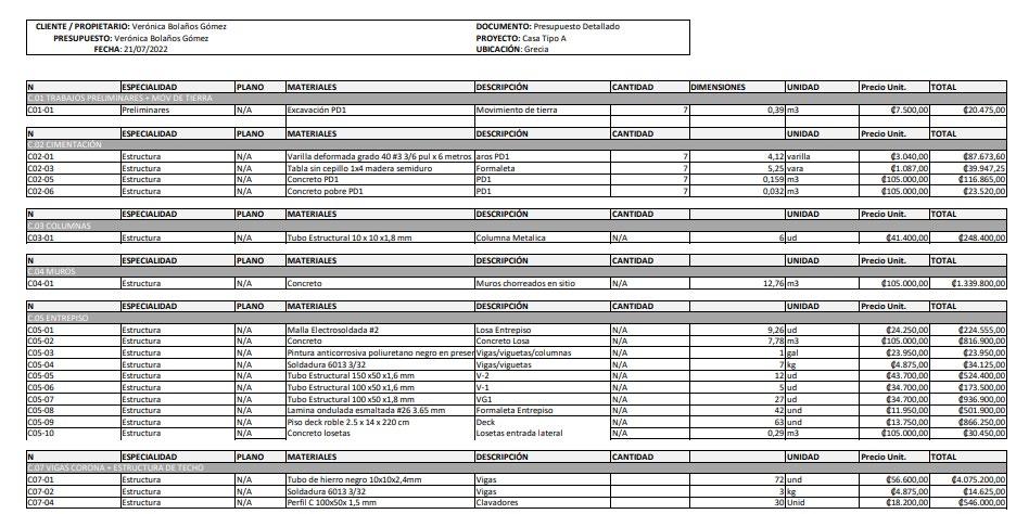 Ejercicio de presupuestación, optimización de recursos y diseño de bajo costo