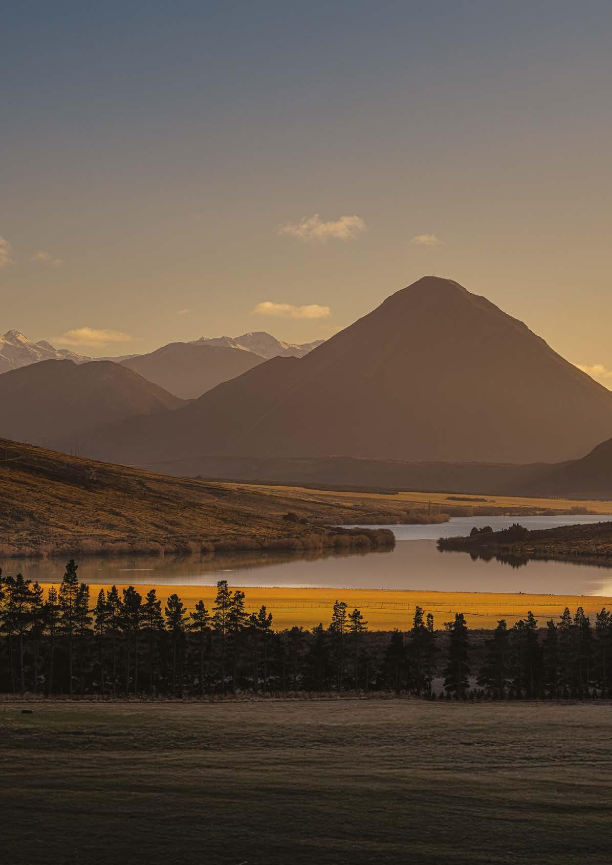 Designed for up to eight guests, The Homestead is a four-bedroom home exclusively offered for sole use. Built into the hillside, its architecture is shaped by its surroundings. Natural stone, recycled timber and precast concrete anchor it to the land, while floor-to-ceiling windows frame views of Lake Pearson, the Southern Alps, and beyond.