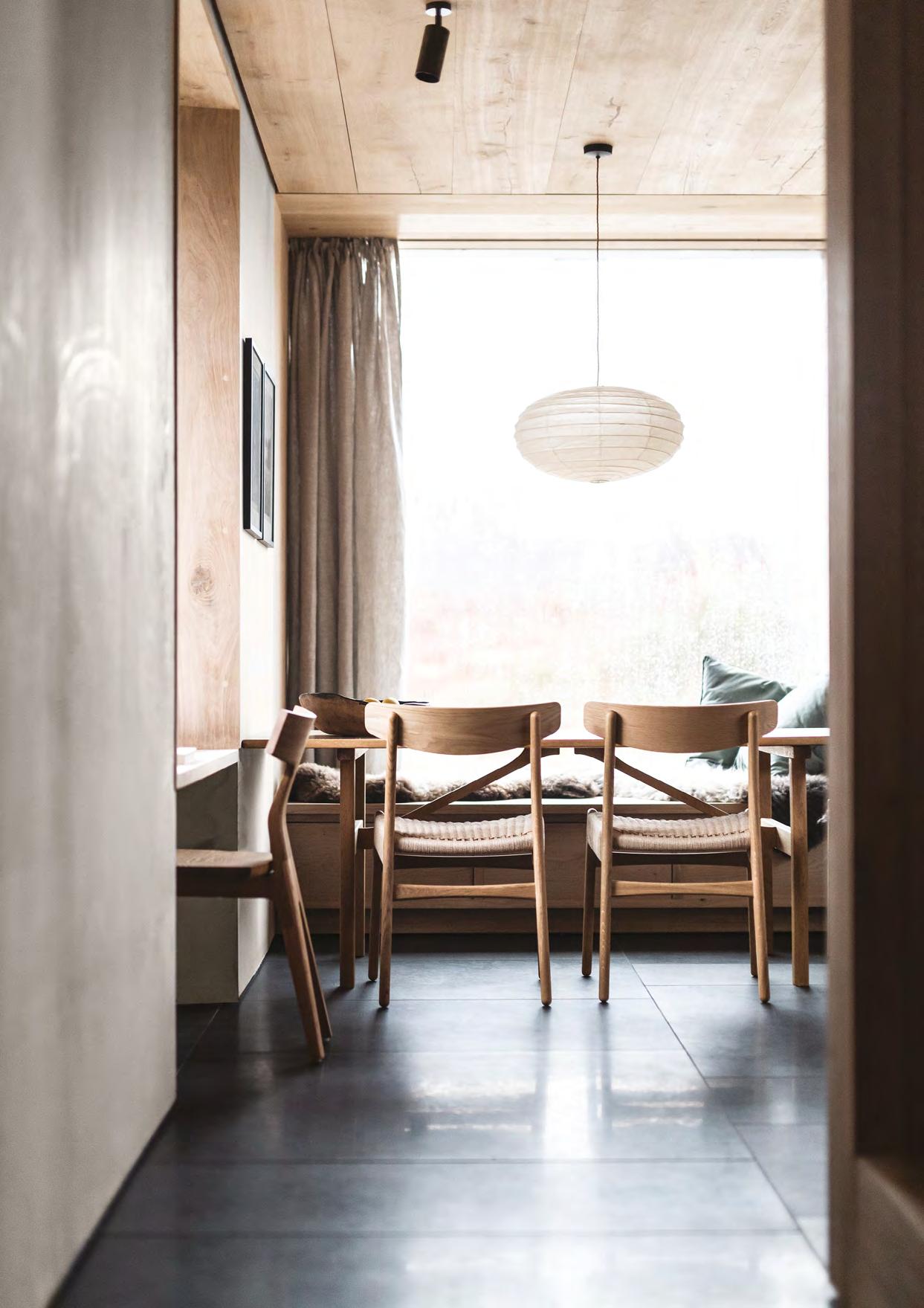 tactile materials, balancing the light counter surfaces with Resene Eagle on the cabinetry and darker elements blended throughout the design. It was important that the space did not feel too contemporary, so Michelle incorporated framed doors, with tongueand-groove detail to ensure the design brief of rustic charm could be met.