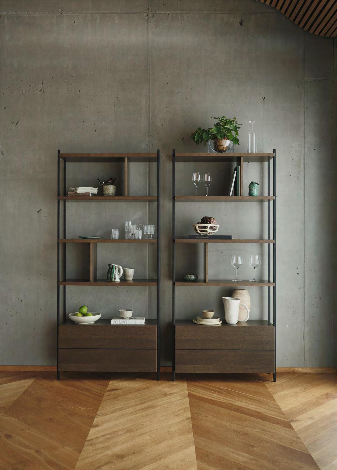 Storage solutions have been considered throughout, with internal pullouts in base pantries either side of the hob and basket storage in the open shelves for the scullery adding to the rustic feel.