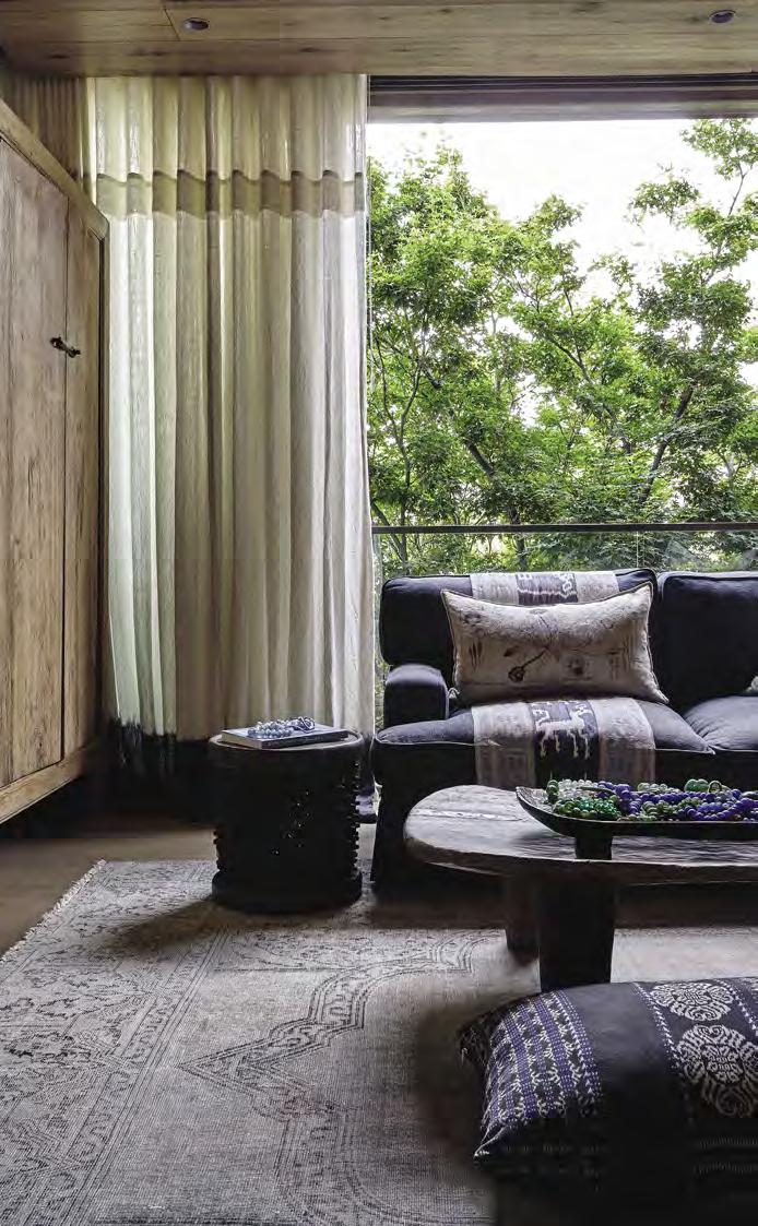 mix, which the light, open tent-like space easily accommodates. They range from an antique Indian chest to hand-carved side tables and wing-back armchair, cosily combined with contemporary couches.