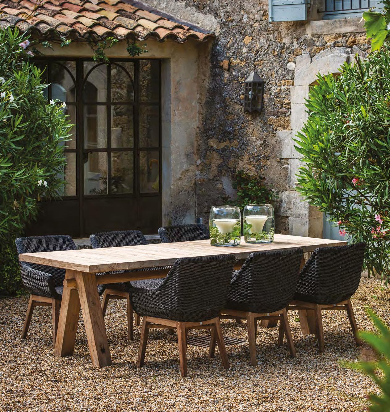 JAMES OUTDOOR WICKER AND RECLAIMED TEAK DINING ARMCHAIRS