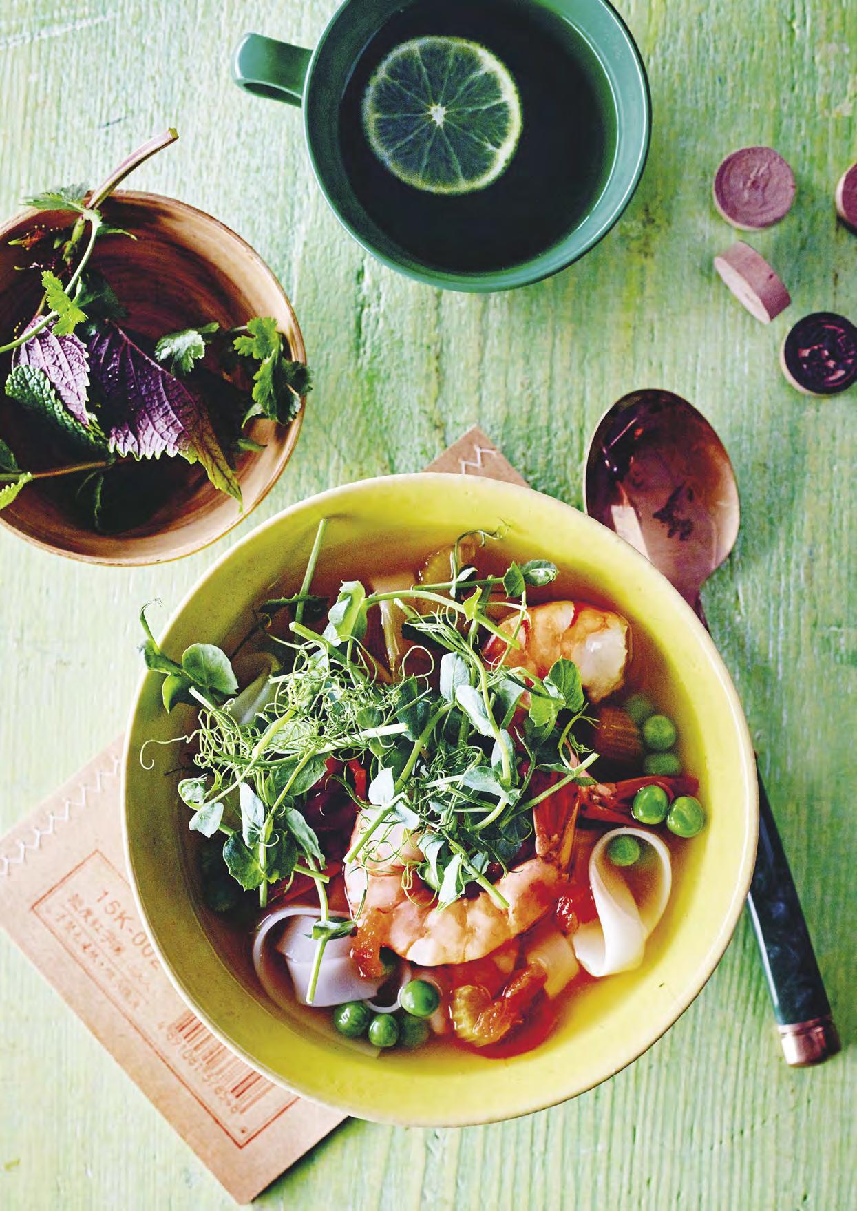Cover: Bibimbap: Asian-inspired recipes (Prawn, Pea & Pea Shoot Soup). Recipes by Louise Pickford, Photography by Ian Wallace, Published by Ryland Peters & Small