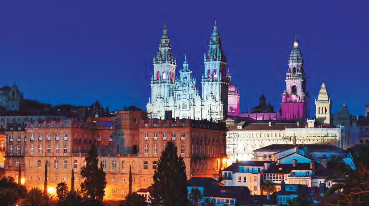 7th Day Santiago de Compostela: breakfast. Departure to start the visit of Santiago de Compostela accompanied by an official guide You will go to “O Monte do Gozo” from where it is possible to see Santiago de Compostela. There a short walk on foot will begin, covering the last 5 km that every pilgrim walks to reach the baroque towers of the Cathedral. From there the visit of this city will begin. You will have the opportunity to enjoy: its Cathedral (ticket included); the “Hostal de Los Reyes Católicos”, nowadays converted into a Tourism Parador; the Benedictine monastery of San Martín Pinario; “Pazo de Raxoi” and the seat of the Town Hall, among others. Free time for lunch (at the client’s expense) and to stroll around the city. Return to the hotel, dinner and accommodation.