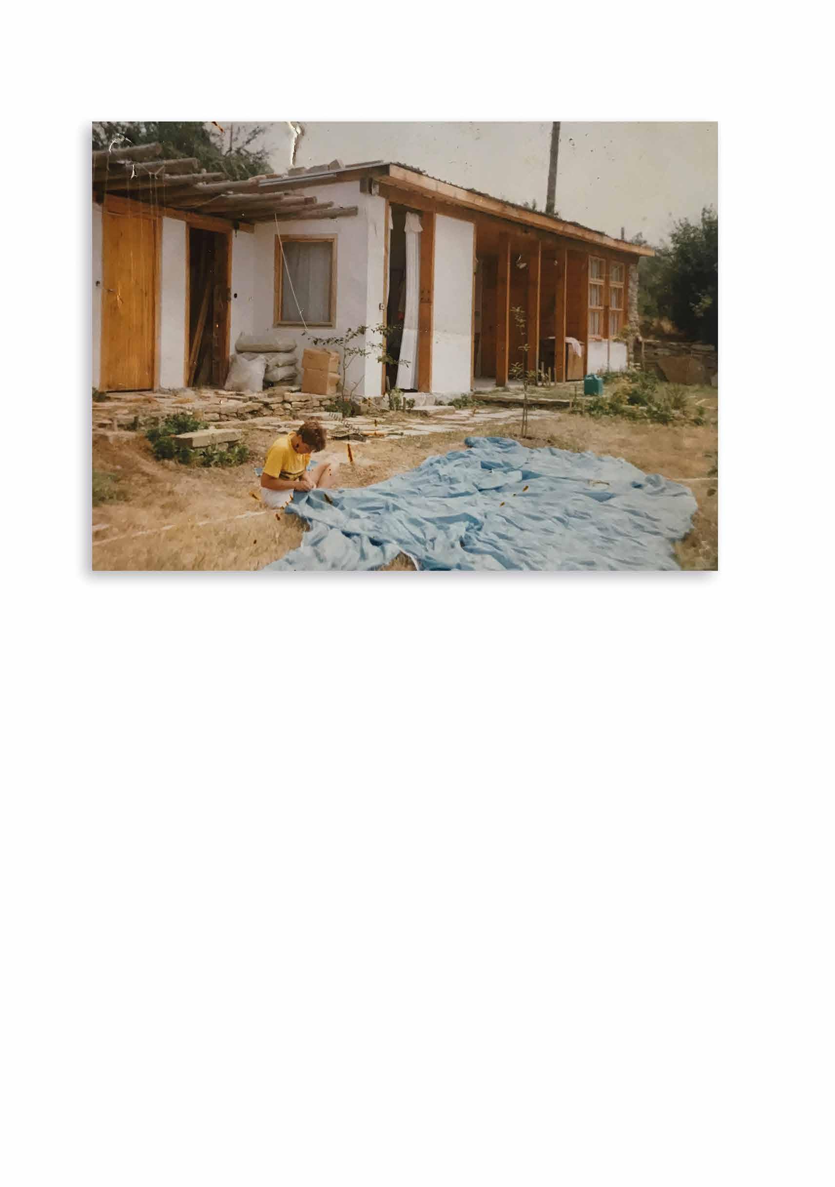художници започва да бивакува на тенти, създадени от брезенти и опънати колове, а всичко се държи от купона – маскирането, дивите плажове и строенето на тъй наречените къщи, някои от които продължават да чакат дострояването си и до днес. “В началото се строи с камъни, с по една торба цимент на гръб и тъй като няма път, няма майстори, няма камиони, няма коли, а купонът е голям, къщата на Буря и Любо се строи едвам-едвам. В началото е навес, или подпорна стена от камъни, която се намира до дерето. Със силната воля на Буря и широтата на Любо, тази стена се сдоби и с покрив, който се превърна в убежище за много хора и за още повече бесни купони“, разказва Велика.