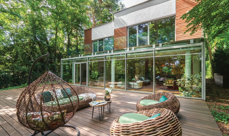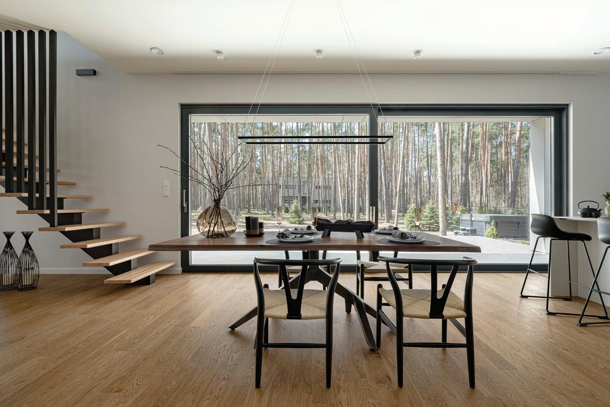 Ten dom wolnostojący położony jest na imponującej zadrzewionej działce o wielkości 5920 m², graniczącej bezpośrednio z lasem. Elegancka rezydencja, usytuowana tuż przy granicy rezerwatu przyrody, zapewnia maksymalną prywatność, wysoką jakość życia oraz wyjątkową oprawę architektoniczną. Zaledwie 300 metrów dzieli ją od Jeziora Zegrzyńskiego – to idealna lokalizacja dla miłośników żeglarstwa, natury i ciszy.